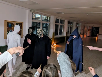 Fabian Alraun stellte anschließend die erfolgreichsten Sportlerinnen und Sportler des Schuljahres vor und ließ ihre Erfolge in Interviewform Revue passieren: